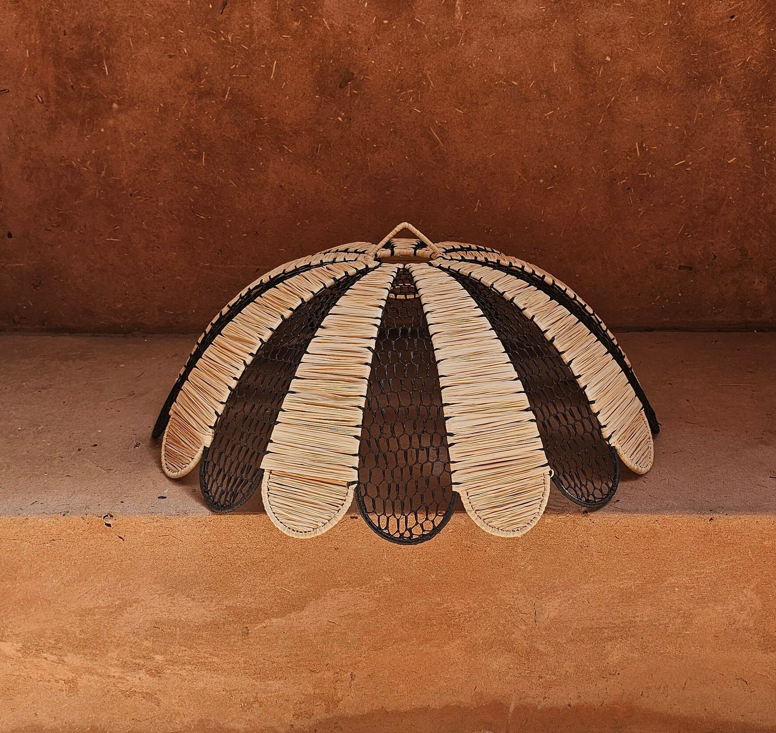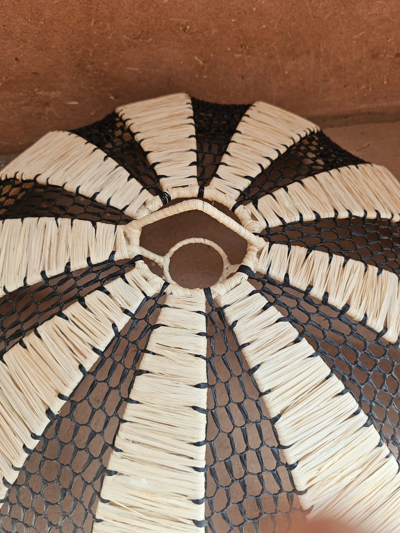 This raffia pendant light embodies the very essence of Moroccan craftsmanship, combining both aesthetic beauty and practical functionality. Handcrafted, it features a metal frame, offering a sturdy and elegant structure.
