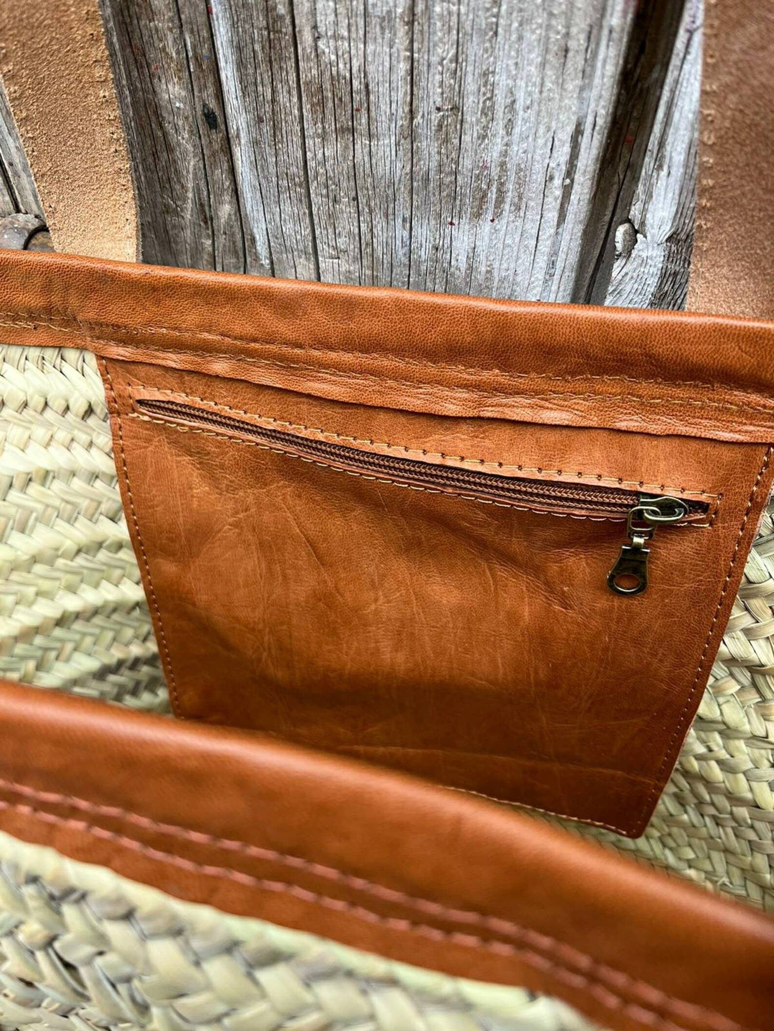 Handwoven in Morocco with sustainable palm leaves and leather handles, this bag offers the perfect fusion between traditional craftsmanship and contemporary style. Its handles are designed to fit comfortably over the shoulder, ensuring a pleasant fit. In addition, it is equipped with a leather buckle and strap to ensure the safety of your precious items inside.