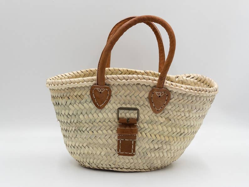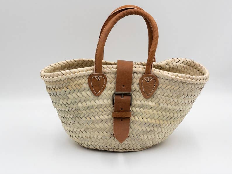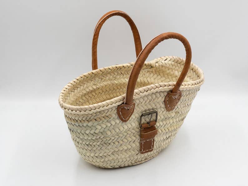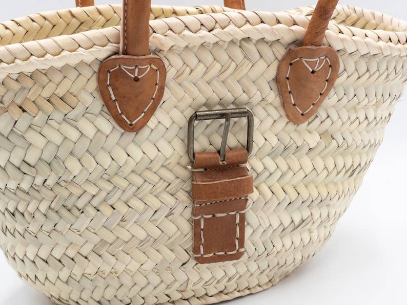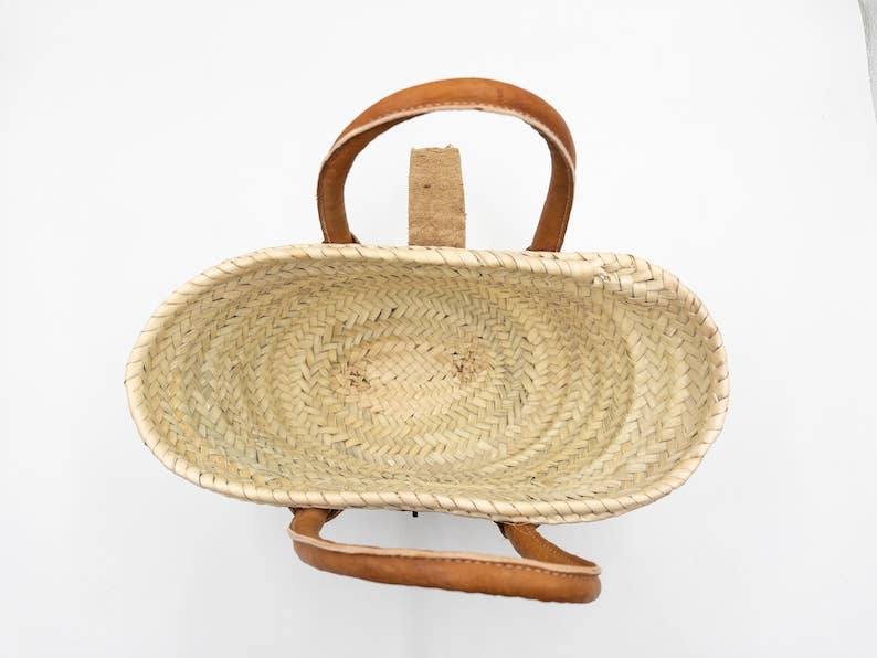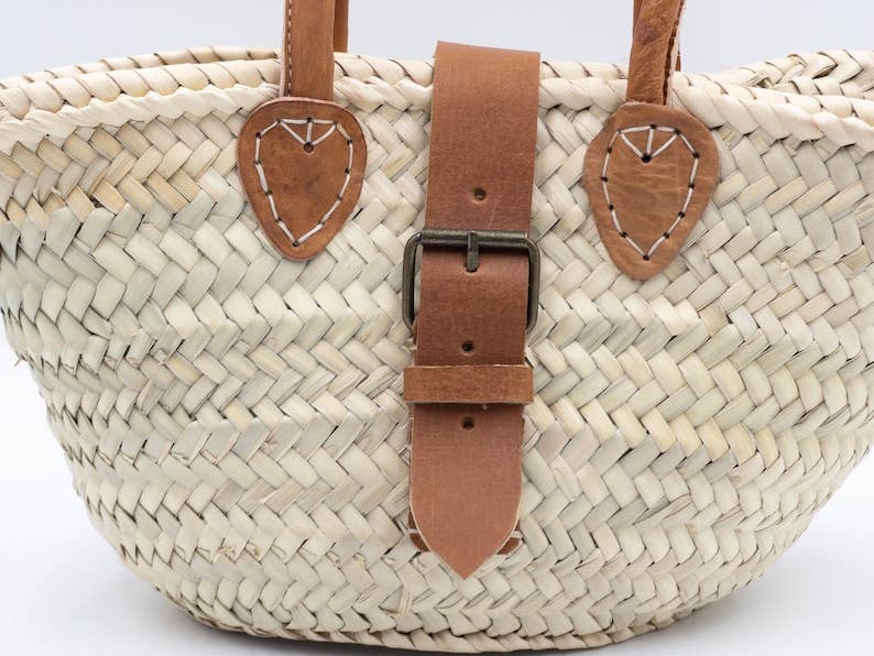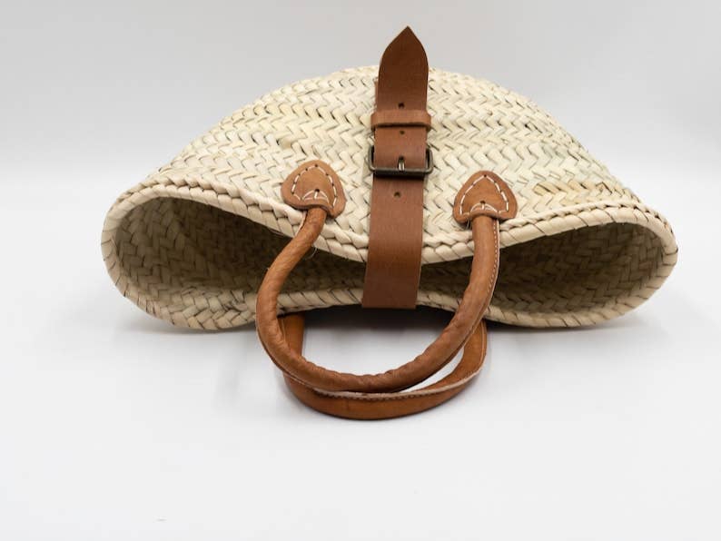Explore our collection of handmade straw baskets that are perfect for adding a bohemian touch to your summer style. Ideal for a day at the beach, a shopping trip or to beautify your vacation home. Equipped with leather handles for comfortable transport, these bags woven with care in Morocco are unique and perfect for quick errands. Bring color and liveliness to your home with our Moroccan Berber bohemian style. Approximate dimensions: 29 x 18 x 11 cm Please note that each basket is unique, handmade, and dimensions may vary slightly. Colors may also vary slightly depending on your monitor and lighting.