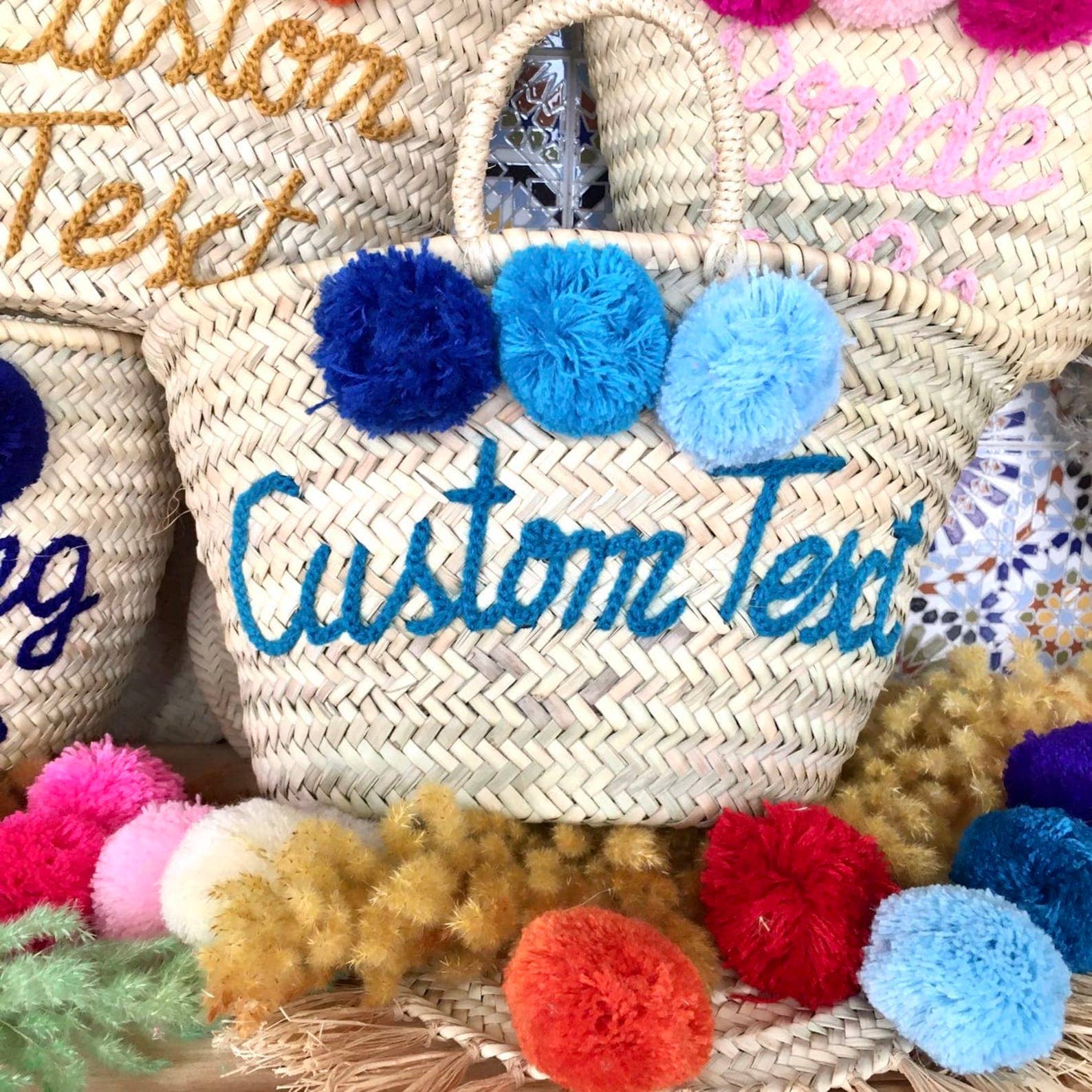 Small round wicker French basket, hand woven in Marrakech by friends and family.