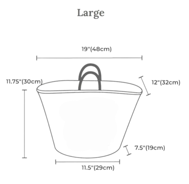All sizes are approximate This basket combines elegance and versatility to meet your daily needs, whether it’s to carry your essentials or to add a touch of style to your