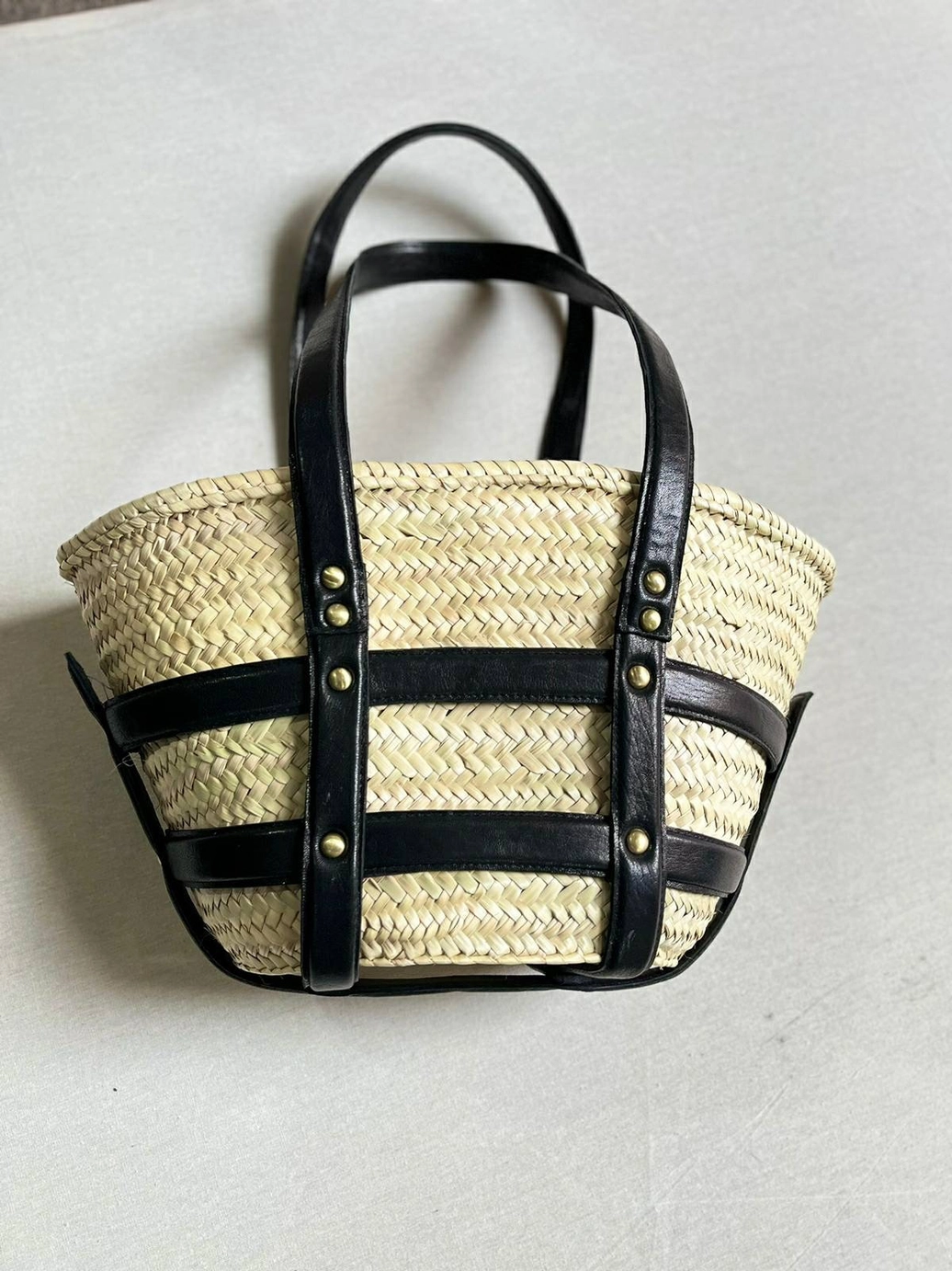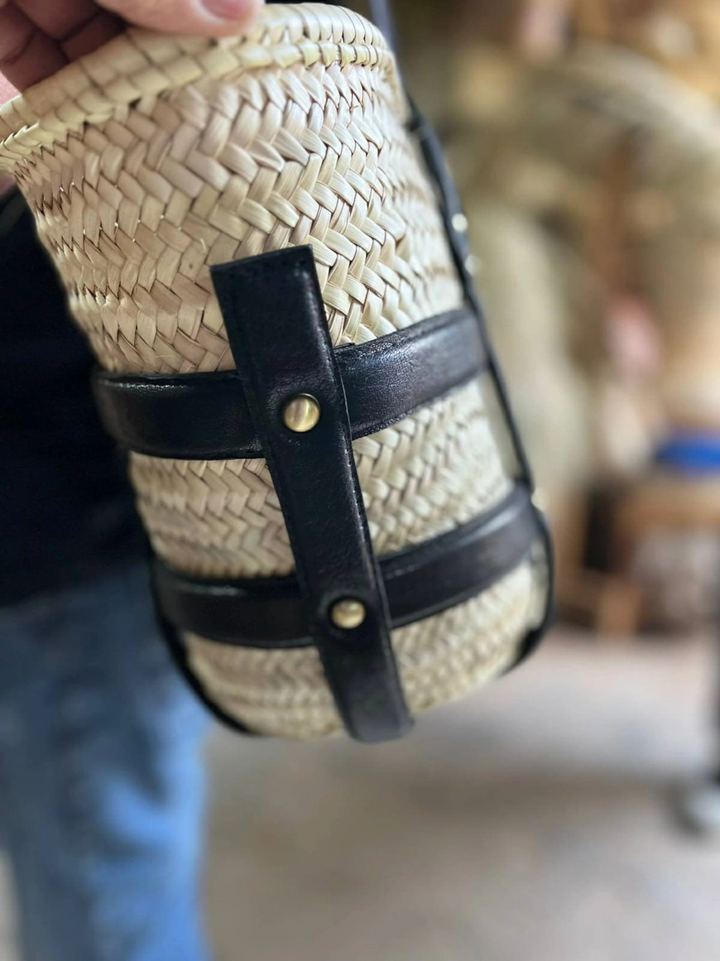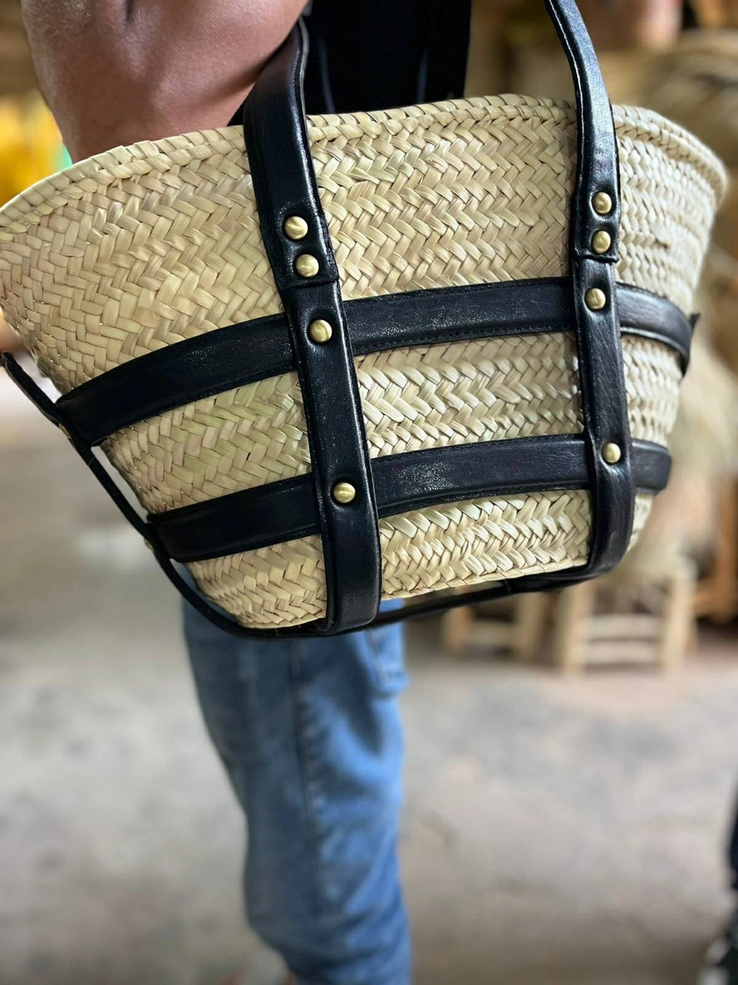 Experience the epitome of Moroccan craftsmanship with our meticulously crafted market tote, intricately woven from premium palm leaves sourced from the heart of Morocco. Admire the exquisite chevron pattern, showcasing the enduring resilience and style of natural fibers such as straw and raffia.