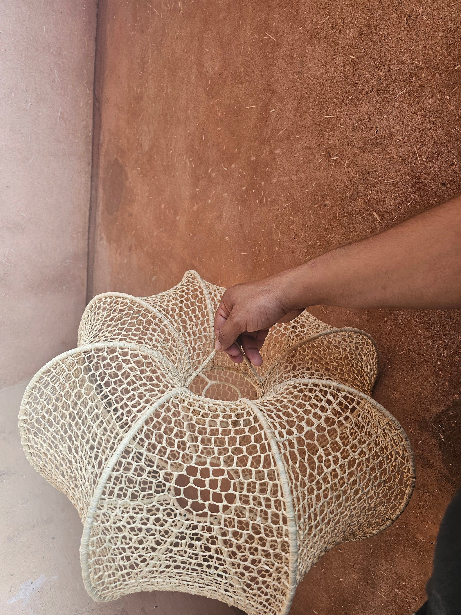 The filtered light through the raffia creates a warm and soothing ambiance, casting a delicate glow on the surrounding walls. This pendant light brings an exotic touch to any space, reminiscent of bustling souks and tranquil oases of Morocco.
