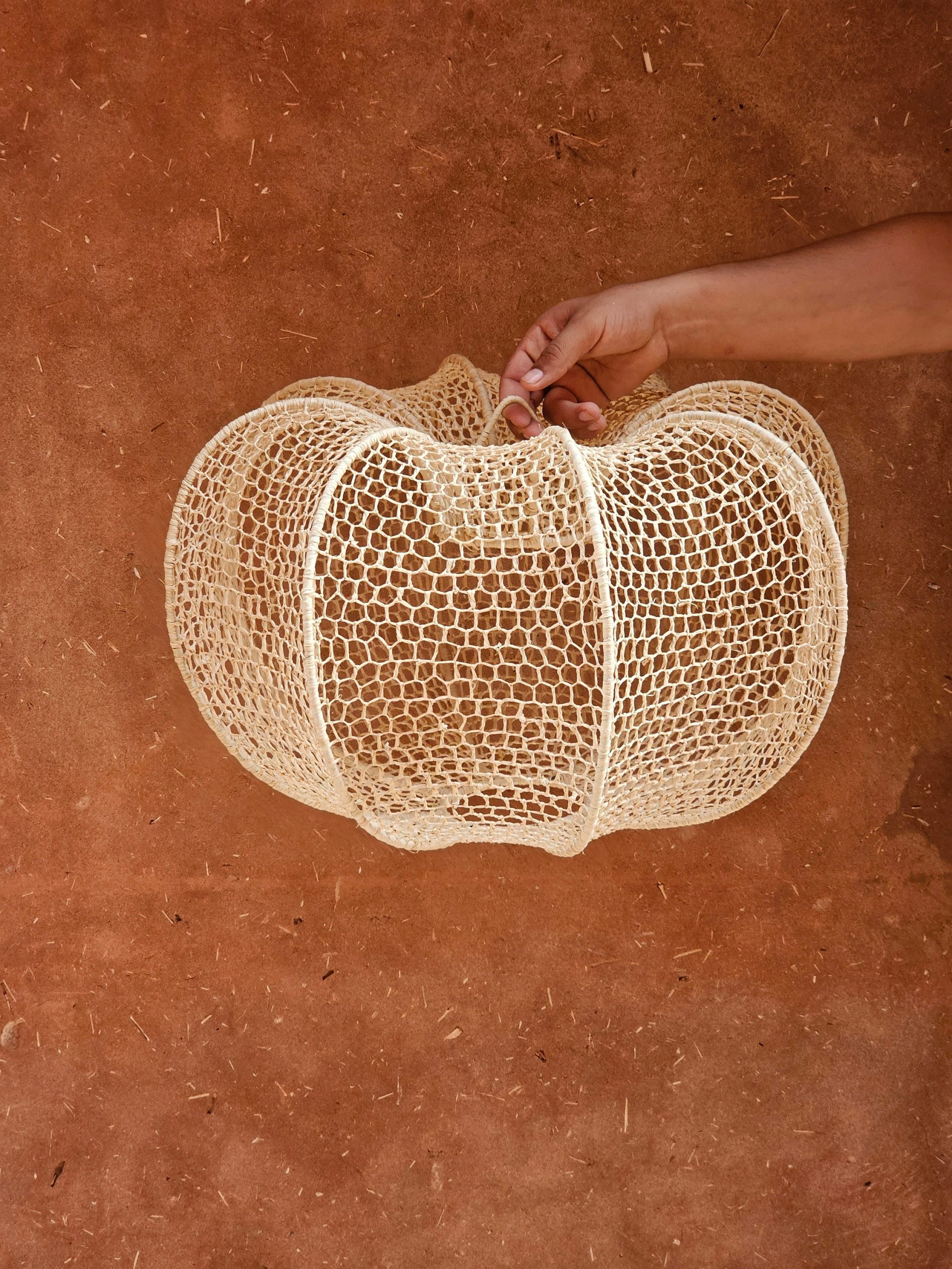 This raffia pendant light embodies the very essence of Moroccan craftsmanship, combining both aesthetic beauty and practical functionality. Handcrafted, it features a metal frame, offering a sturdy and elegant structure.