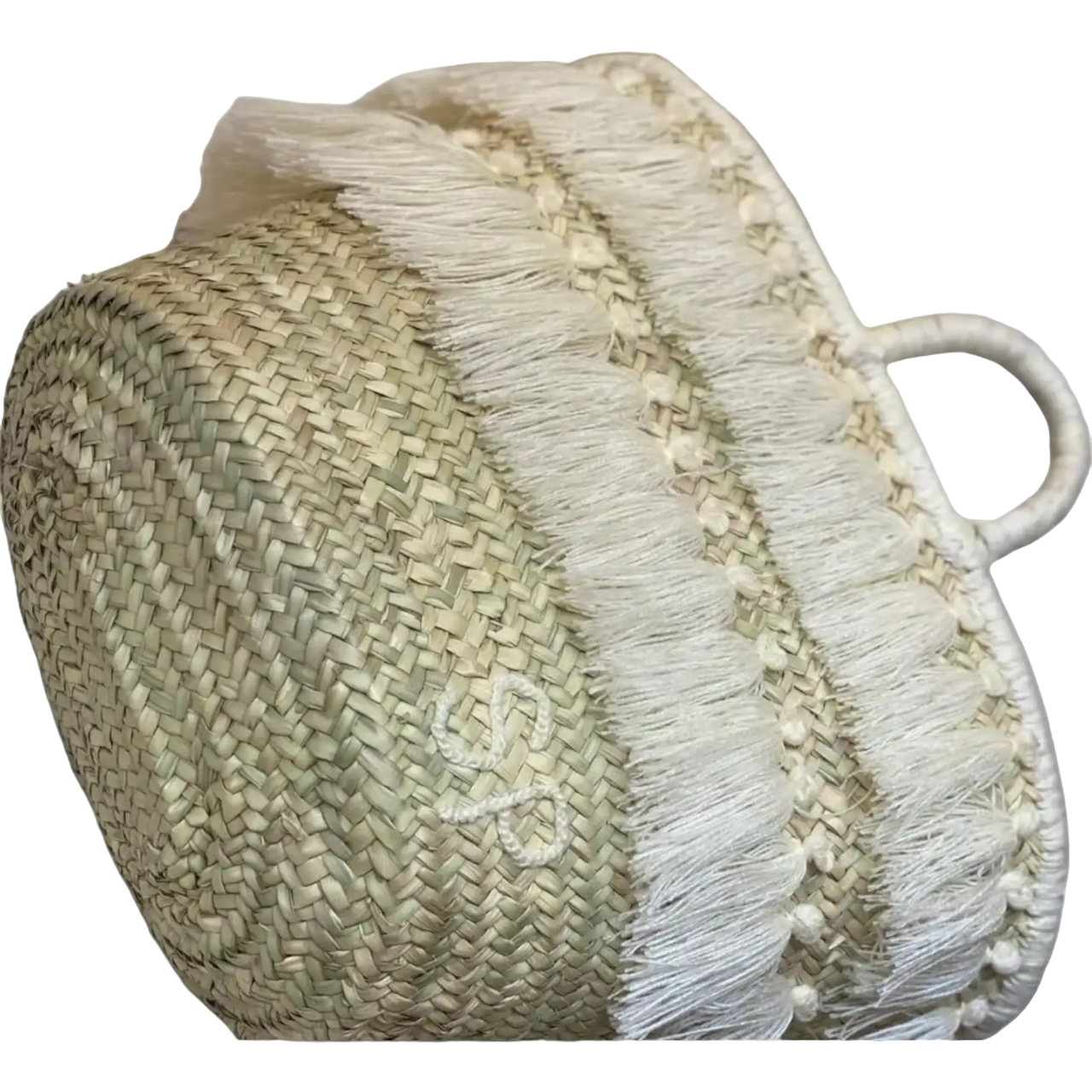Immerse yourself in sophistication with our exquisite handwoven market tote, meticulously crafted in Morocco using premium date palm leaves. Marvel at the intricate chevron pattern, highlighting the natural fiber’s enduring style and resilience. The addition of leather legs not only guarantees stability but also infuses a refined charm into this artisanal masterpiece.