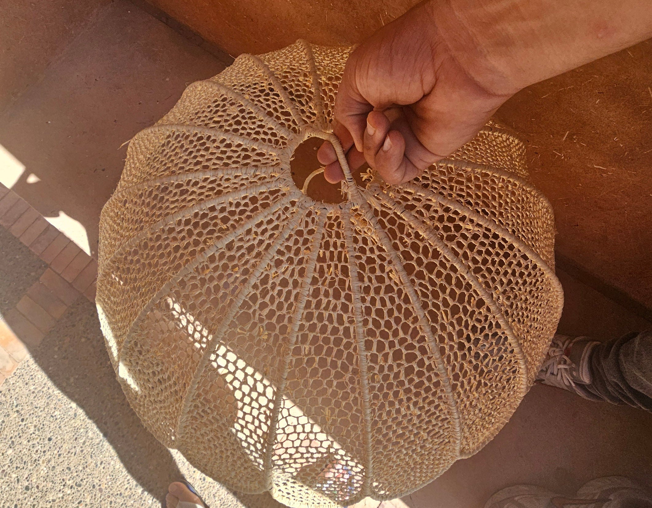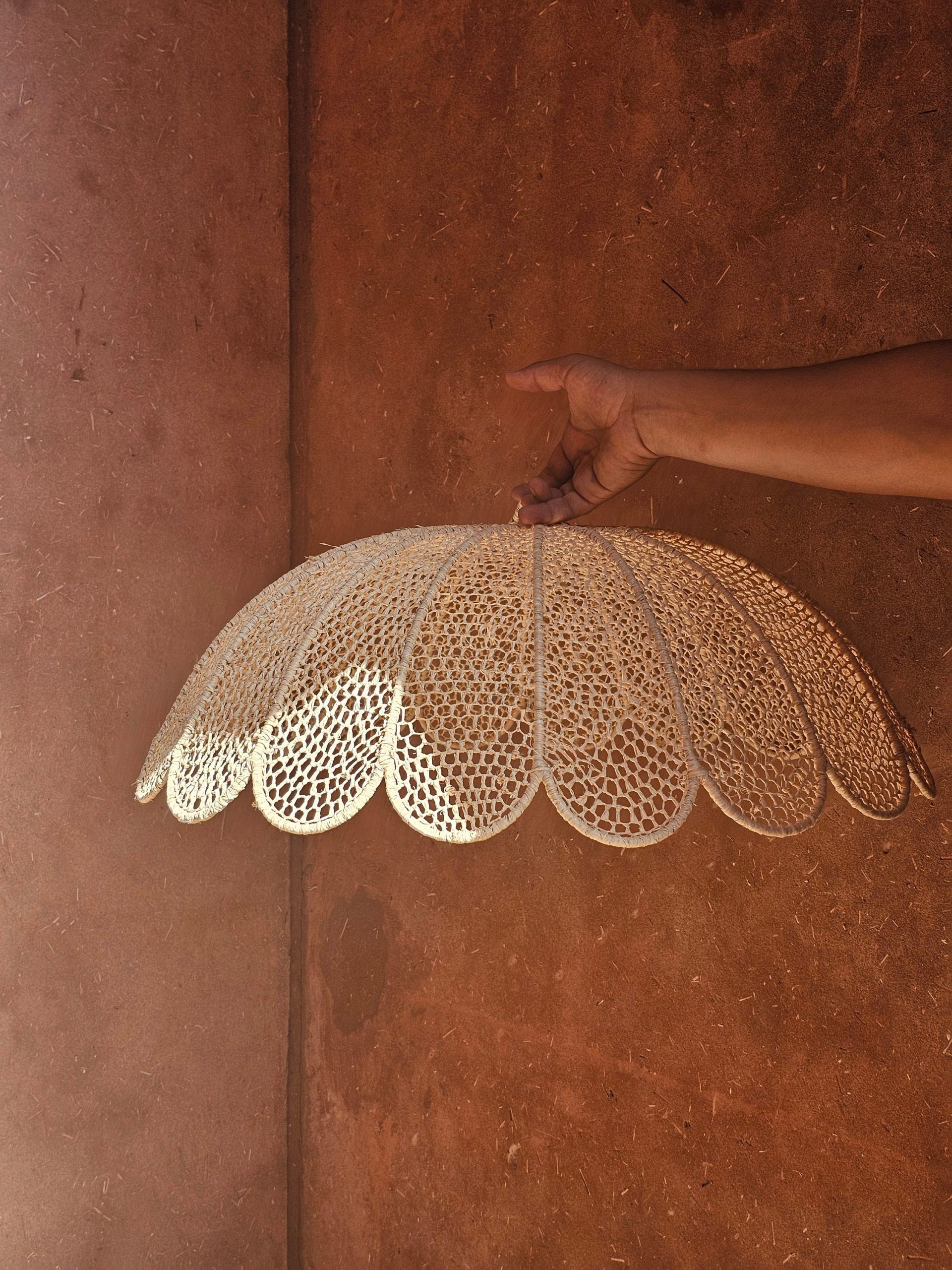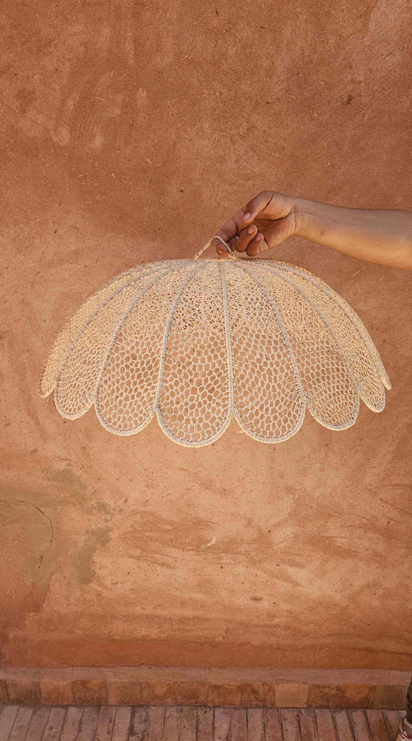 This raffia pendant light embodies the very essence of Moroccan craftsmanship, combining both aesthetic beauty and practical functionality. Handcrafted, it features a metal frame, offering a sturdy and elegant structure.