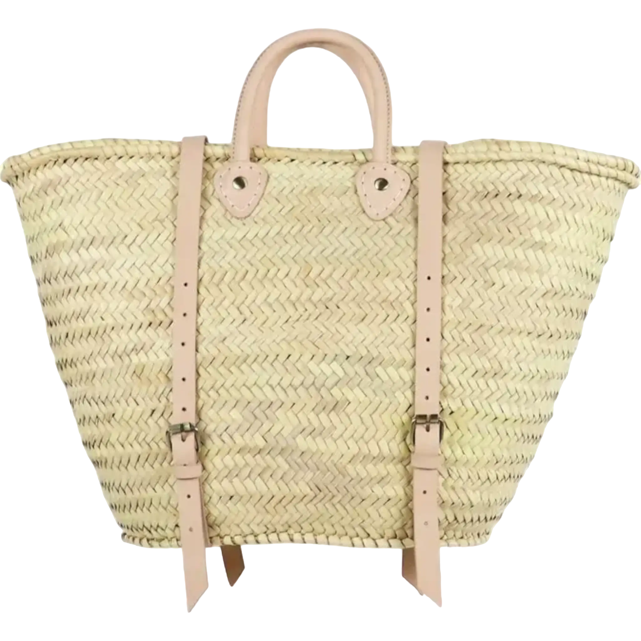 Our straw backpacks are classic French market baskets, making them the perfect choice for shopping trips, picnics, and days at the beach. Not only are they eco-friendly, but they also make a stylish addition to your home for storing toys or magazines. Handwoven in Morocco from palm leaves and crafted in our workshop, they are both sturdy and flexible. They come with short leather handles for comfortable carrying.